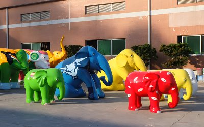 大型動物景觀玻璃鋼彩繪大象雕塑