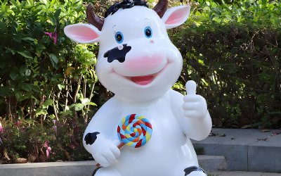 吃棒棒糖的卡通小奶牛雕塑